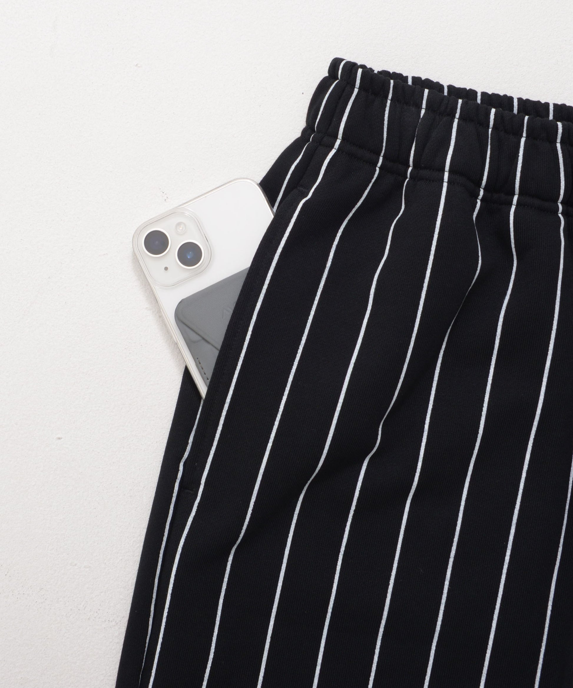 【Black Friday30%OFF】STRIPE SWEAT PANTS/スタッズ デニム パンツ ワイド 【FAM-52503】