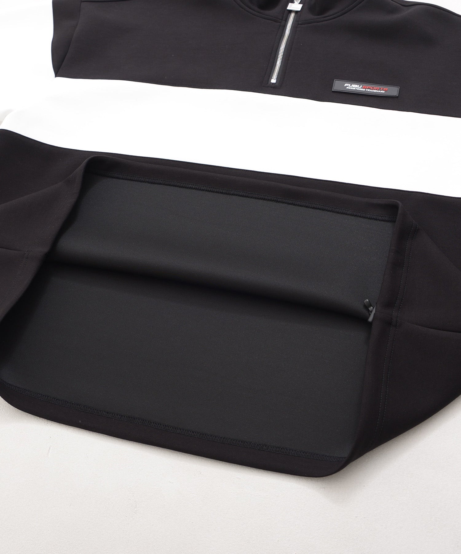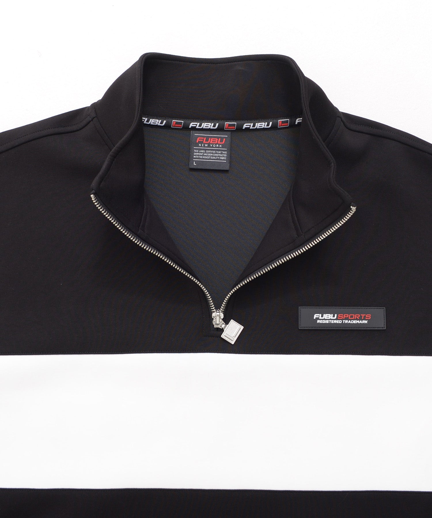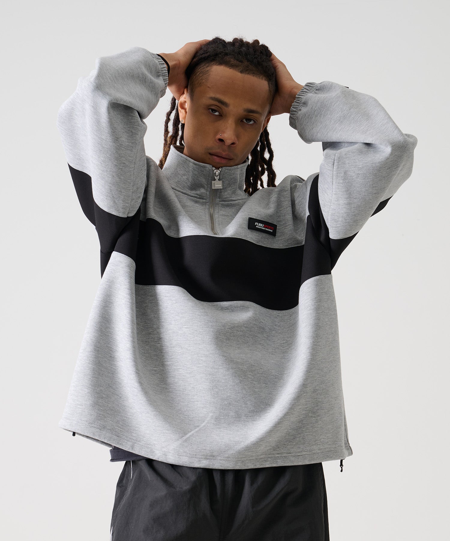 大胆な配色切り替えとバックに大きく配置した“FUBU”ロゴが目を惹く、存在感たっぷりのハーフジップトレーナー。ストリートテイストをしっかり感じつつも、クリーンなライン使いとハーフジップが大人っぽさを演出します。
