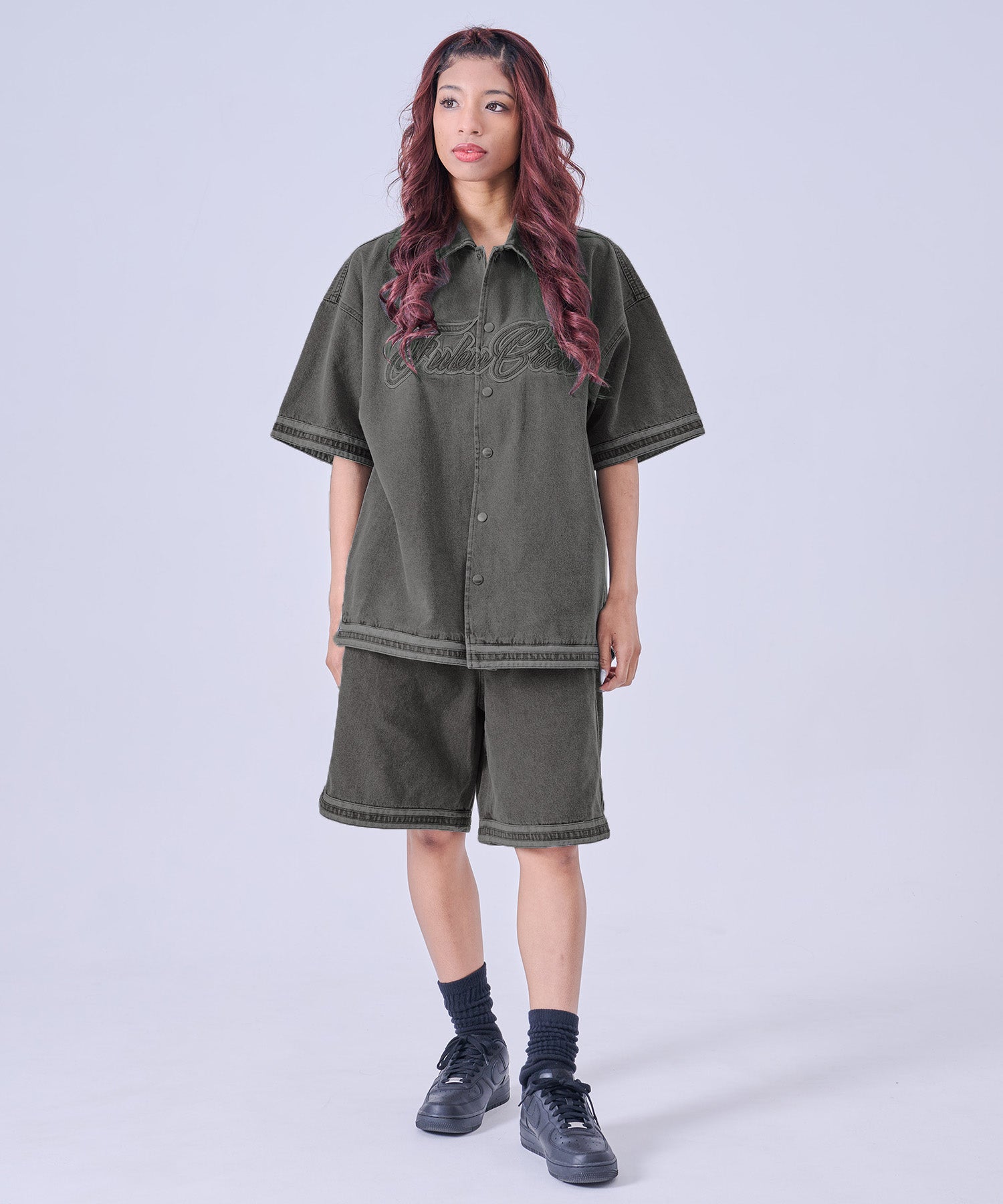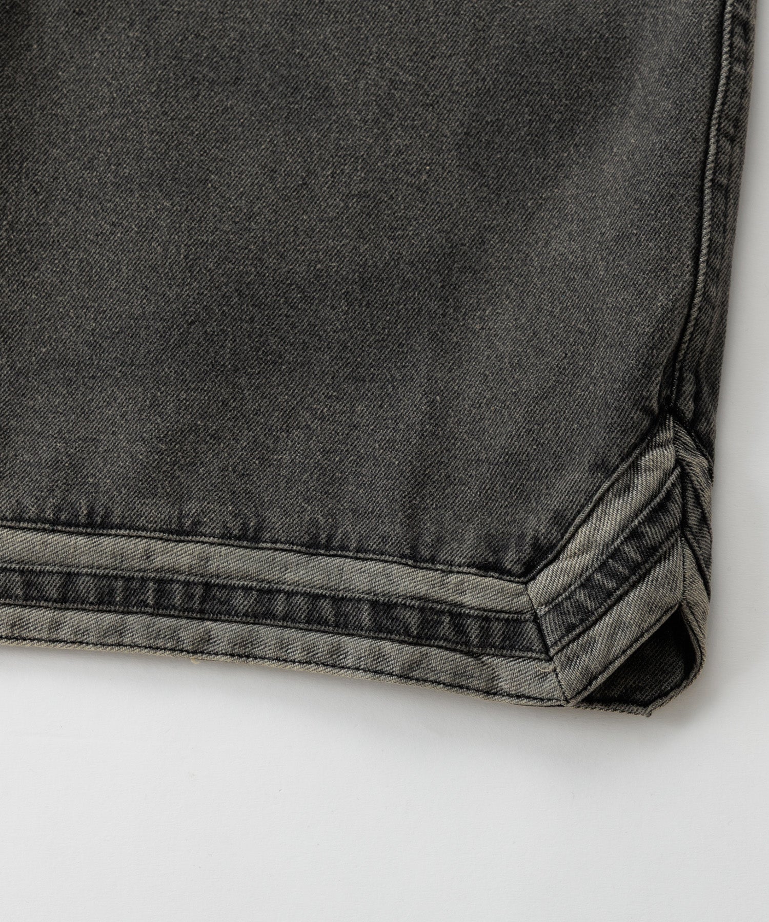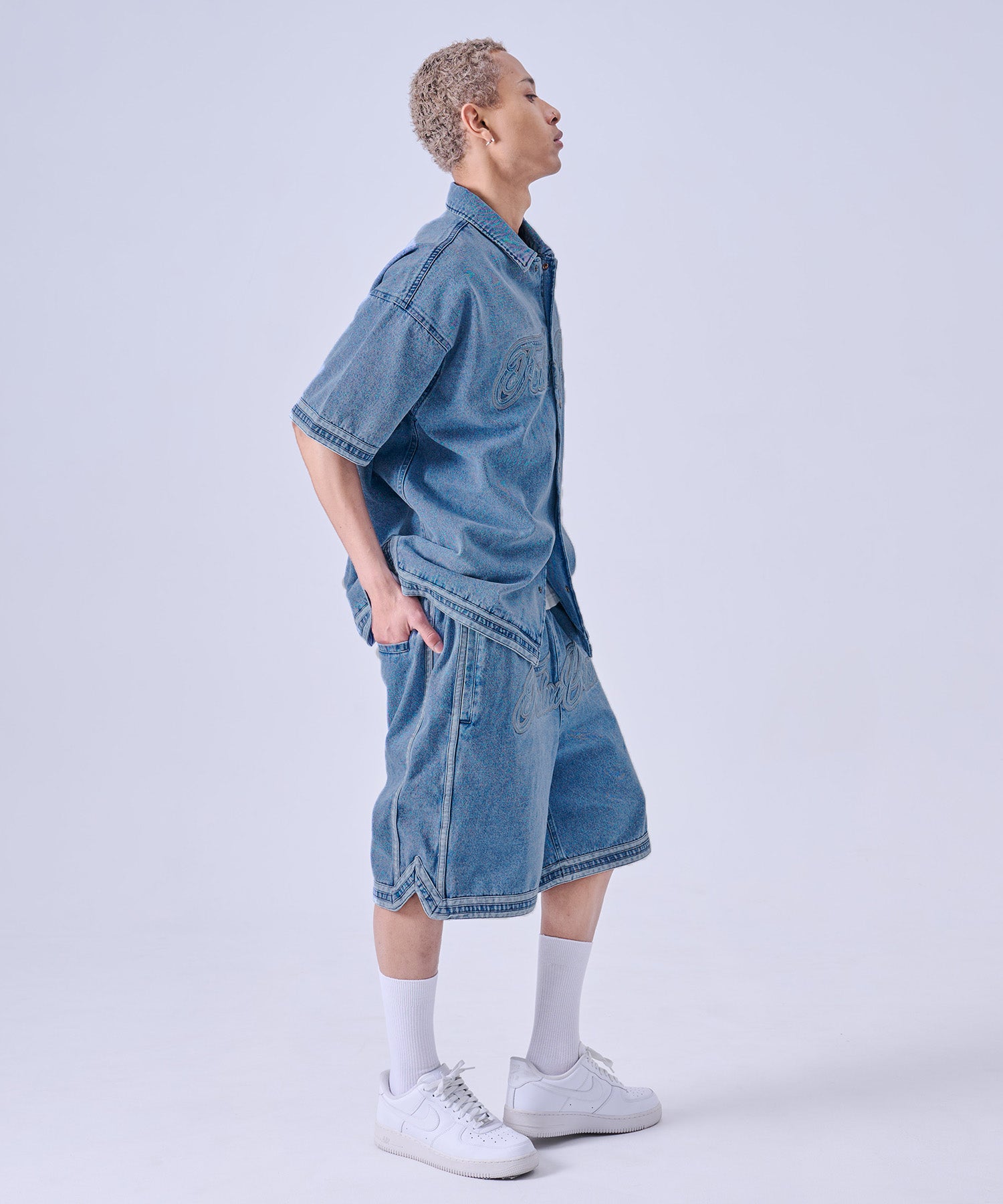 素材は程よい厚みの 8.5ozデニム素材 を使用。デニムならではの風合いと耐久性を兼ね備えた、ストリートスタイルに映える素材です。