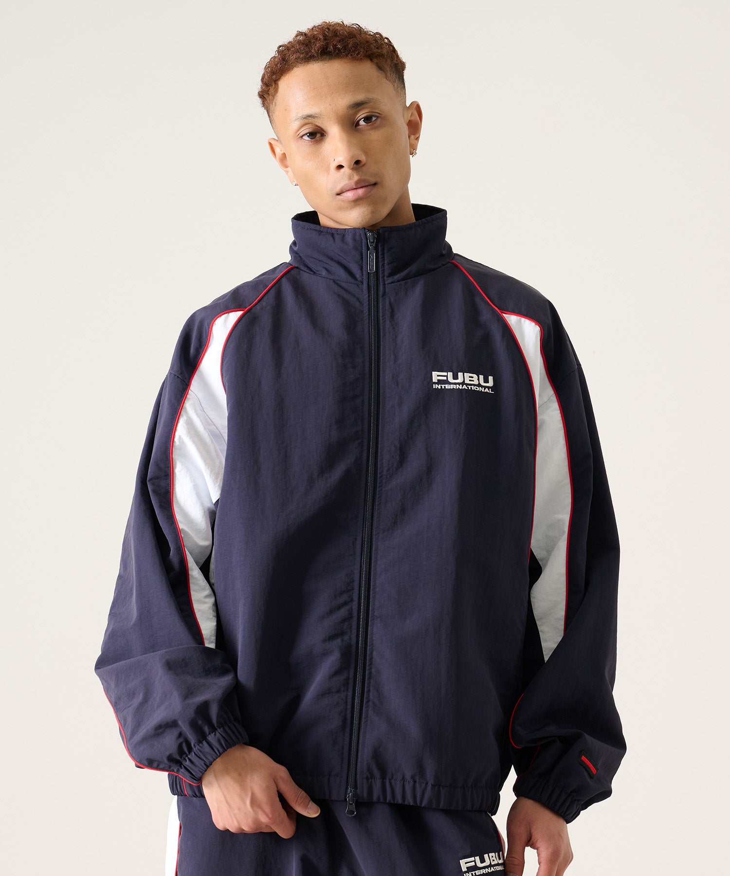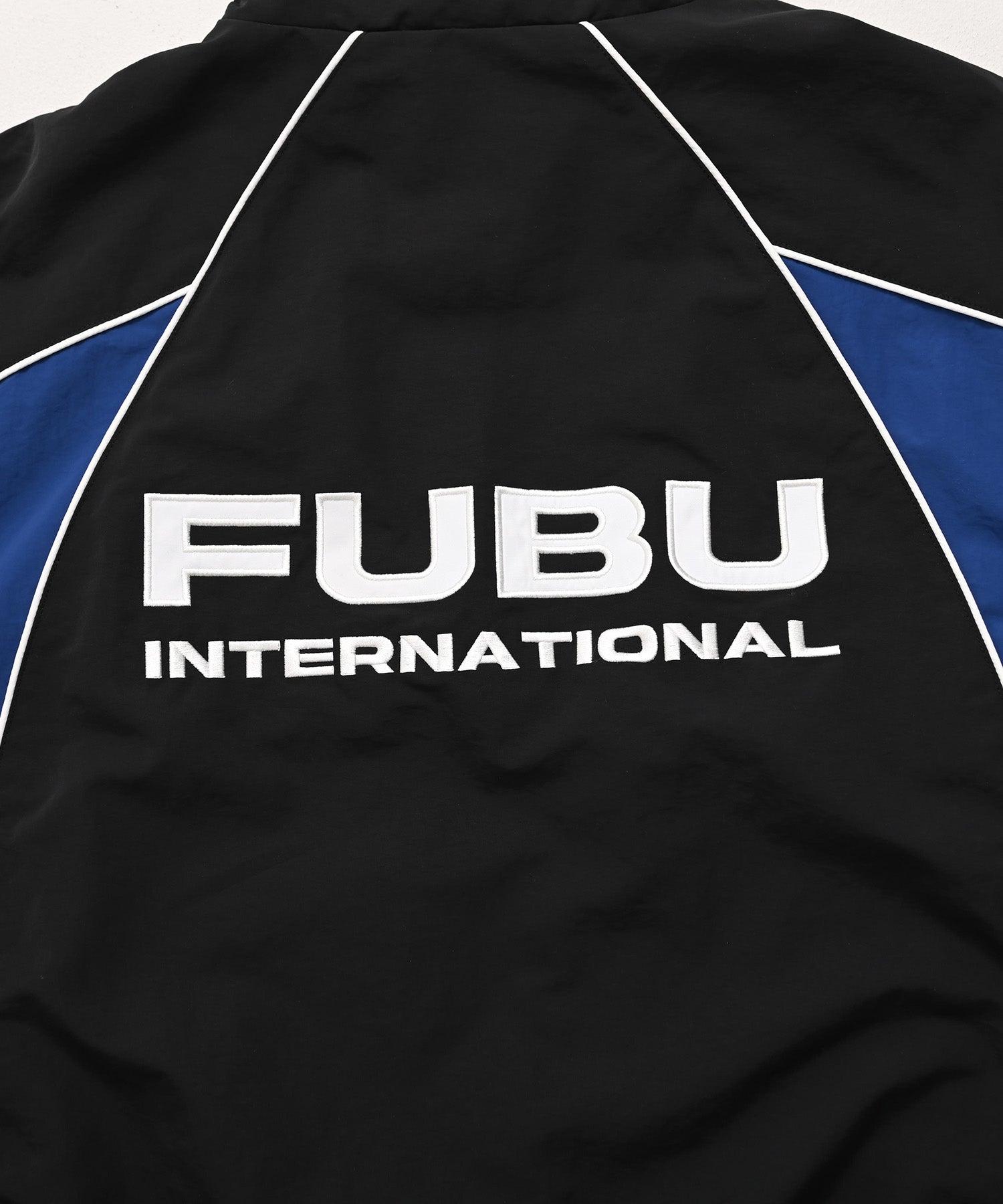 ・背中には「FUBU INTERNATIONAL」のロゴを大胆に配置。ストリートブランドとしてのアイデンティティを強くアピール。