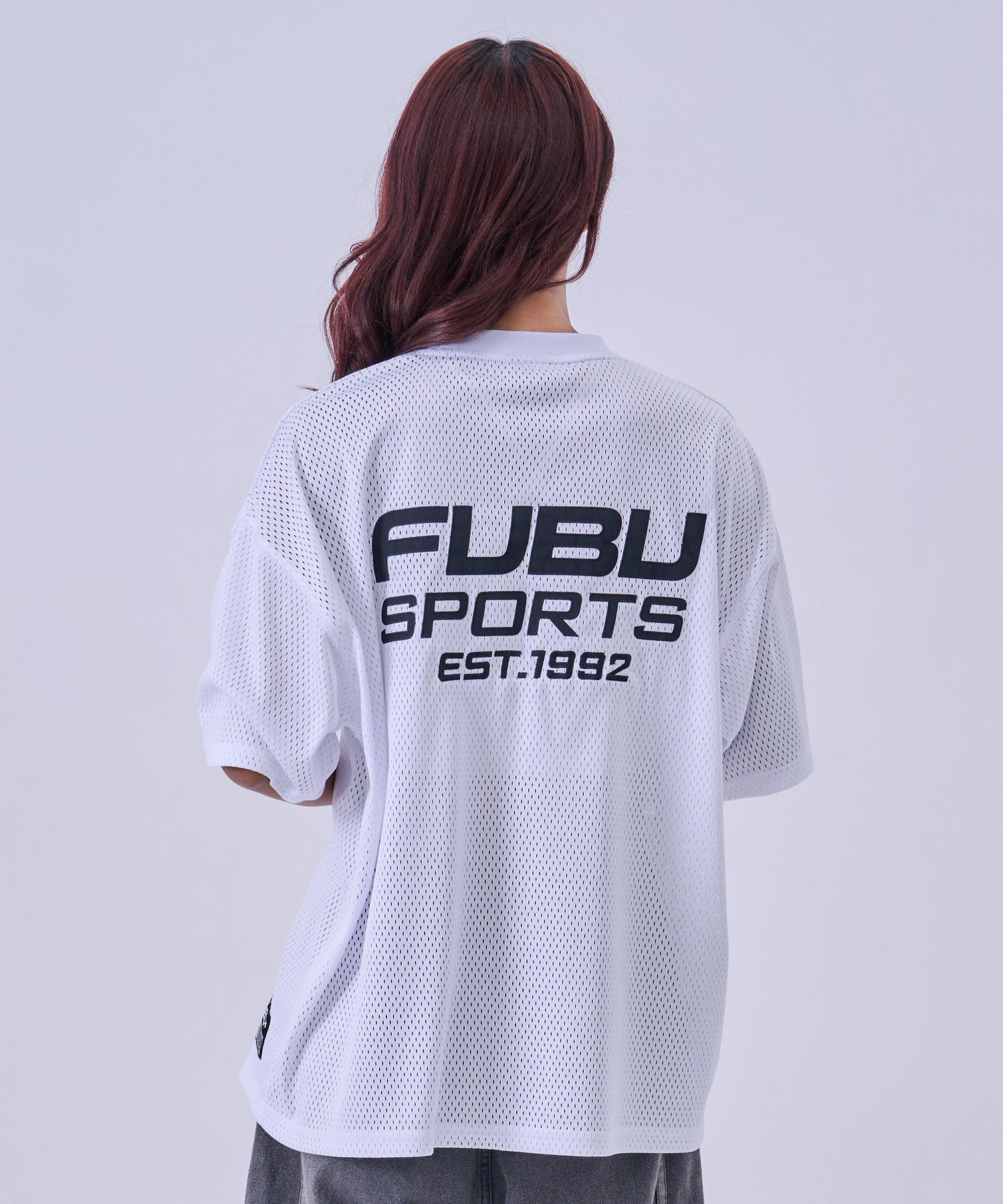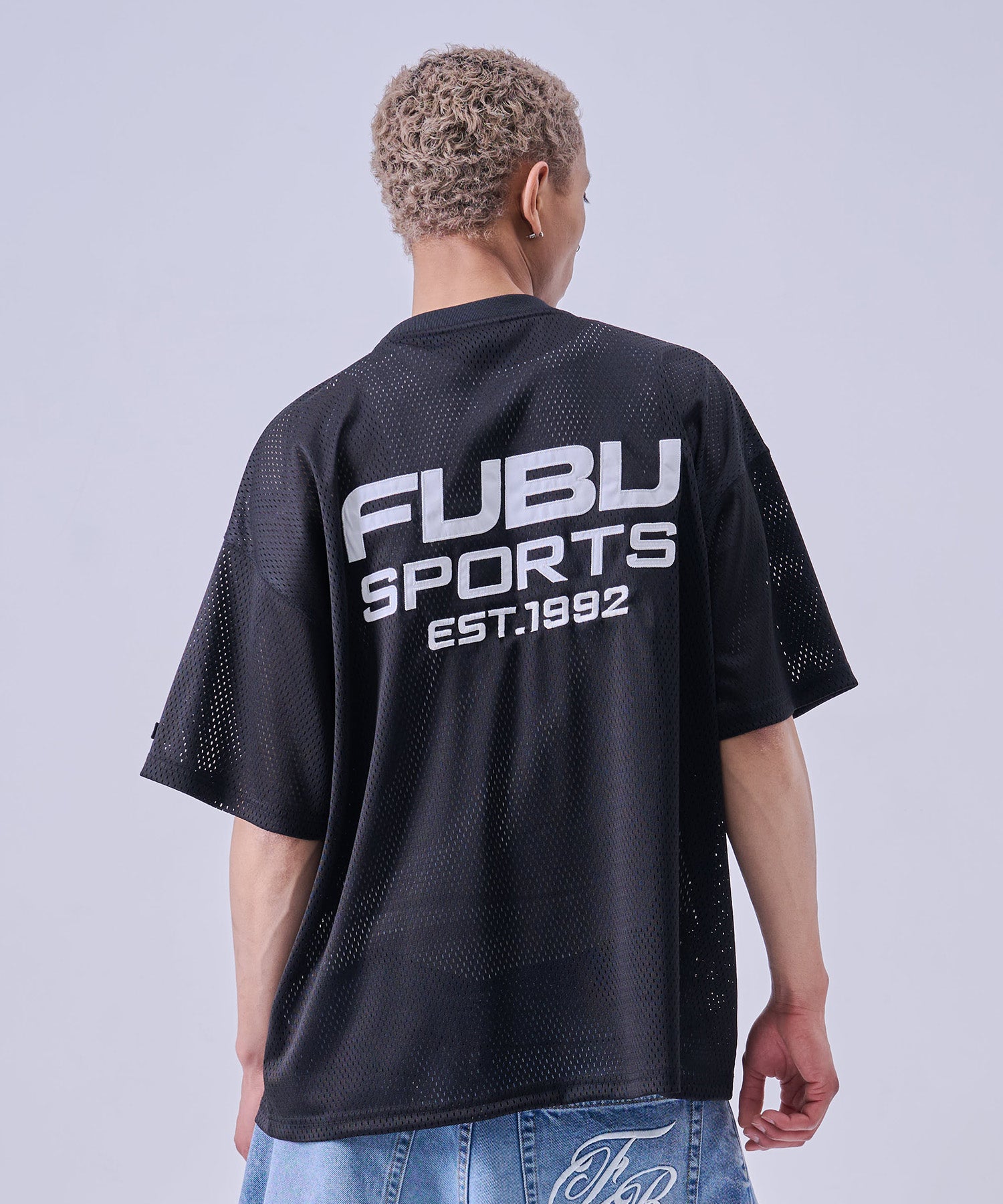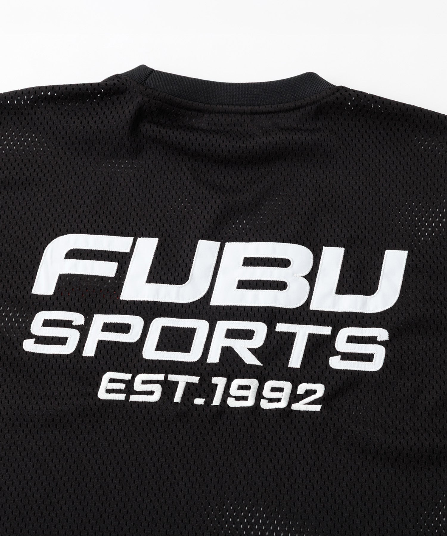 ・バックに大胆に配置された FUBU SPORTS EST.1992ロゴ が特徴のストリートデザイン。