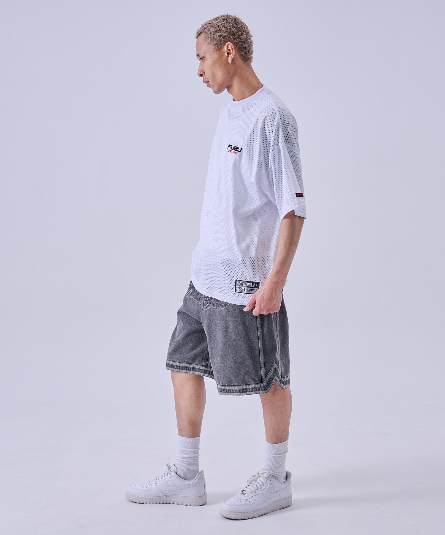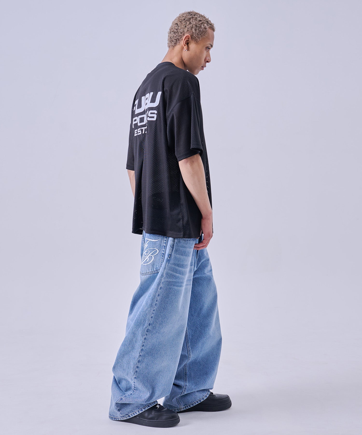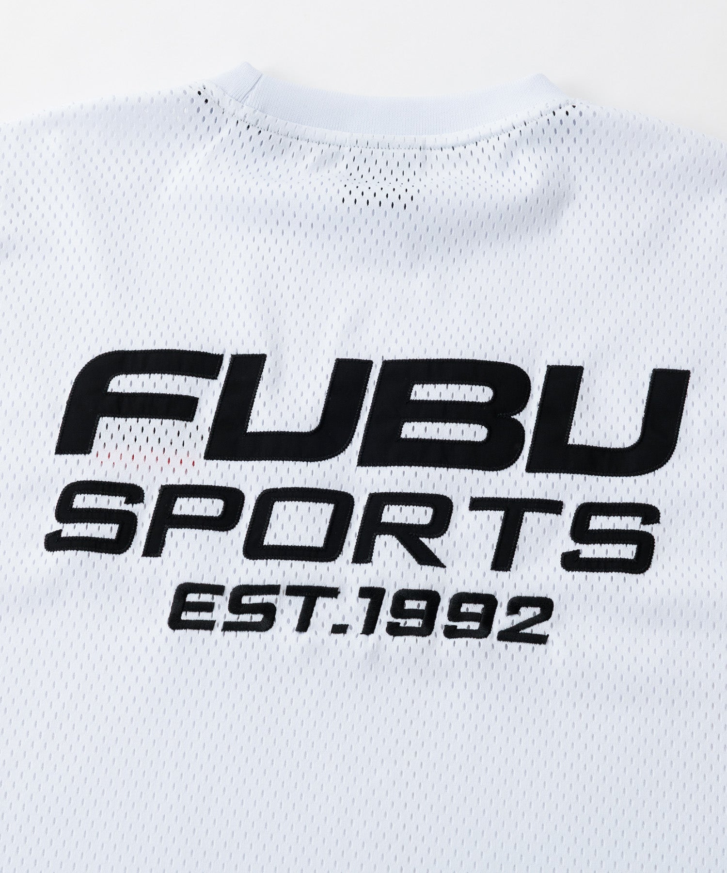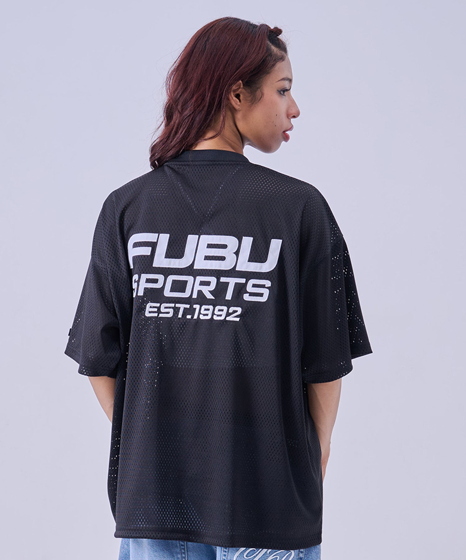 ・バックに大胆に配置された FUBU SPORTS EST.1992ロゴ が特徴のストリートデザイン。