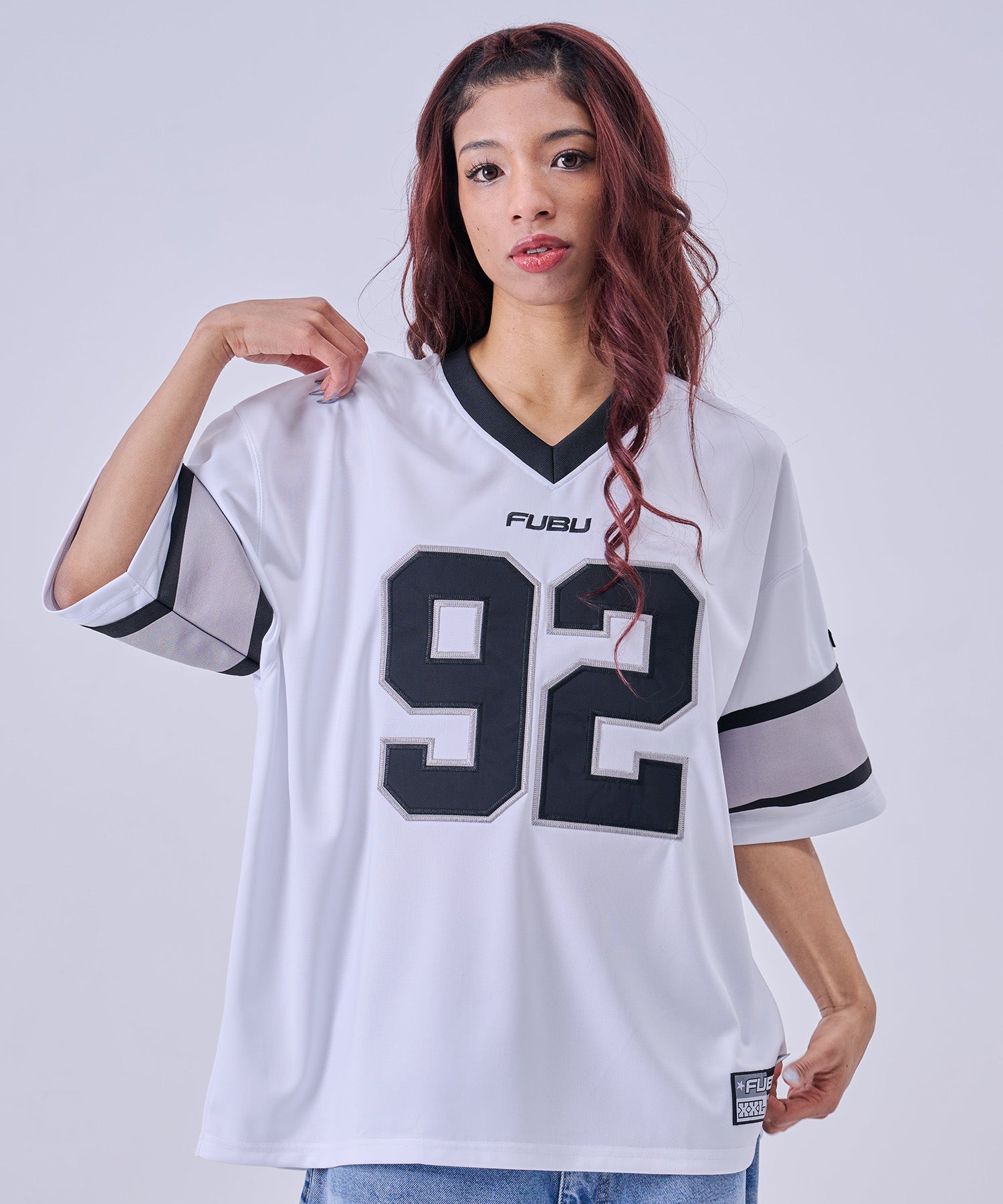 ・スポーツユニフォームをイメージしたデザインに、ストリートブランド FUBU のロゴを組み合わせた存在感のある一枚です。